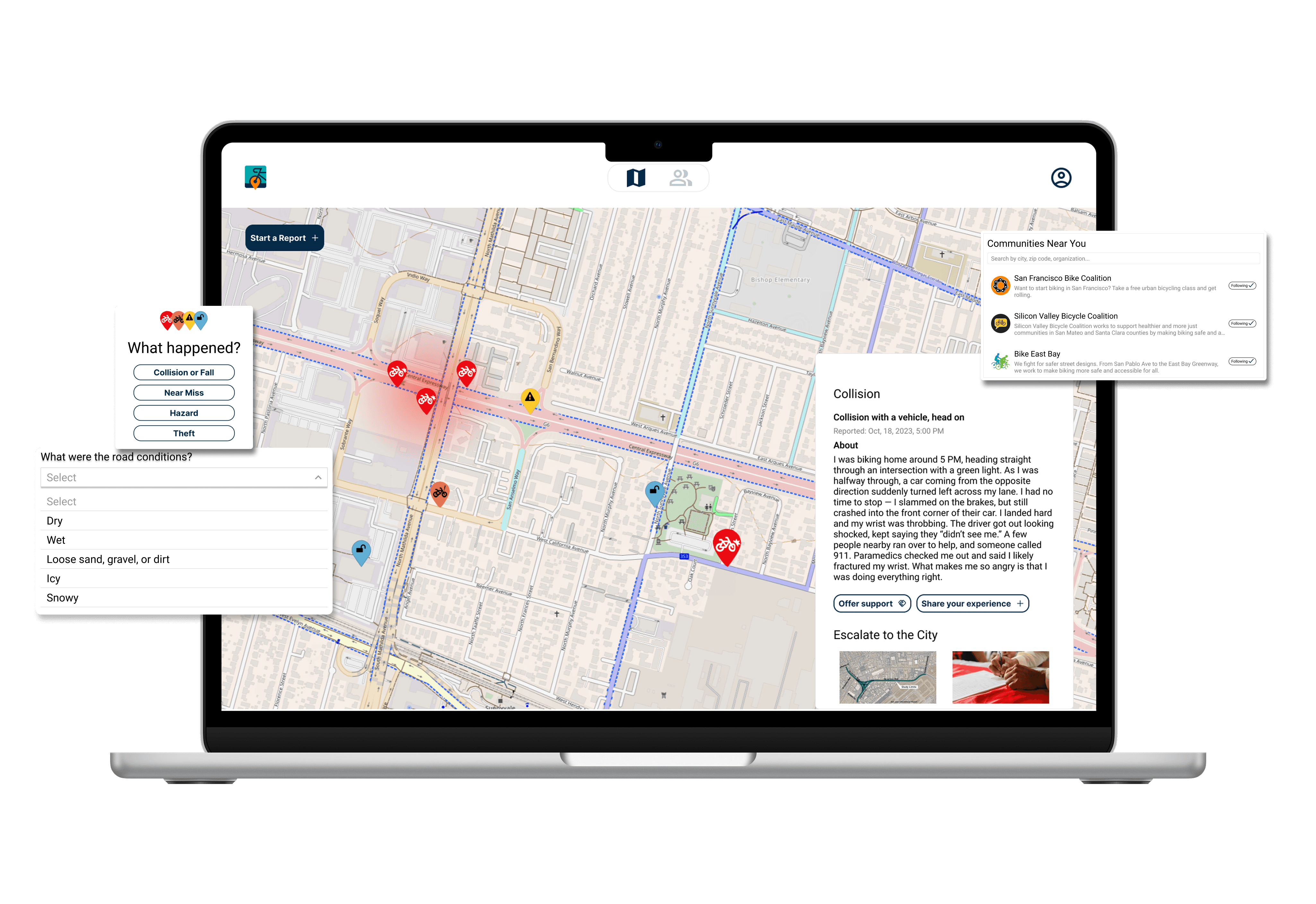 Share your experience, offer support, or escalate issues to the city to drive change